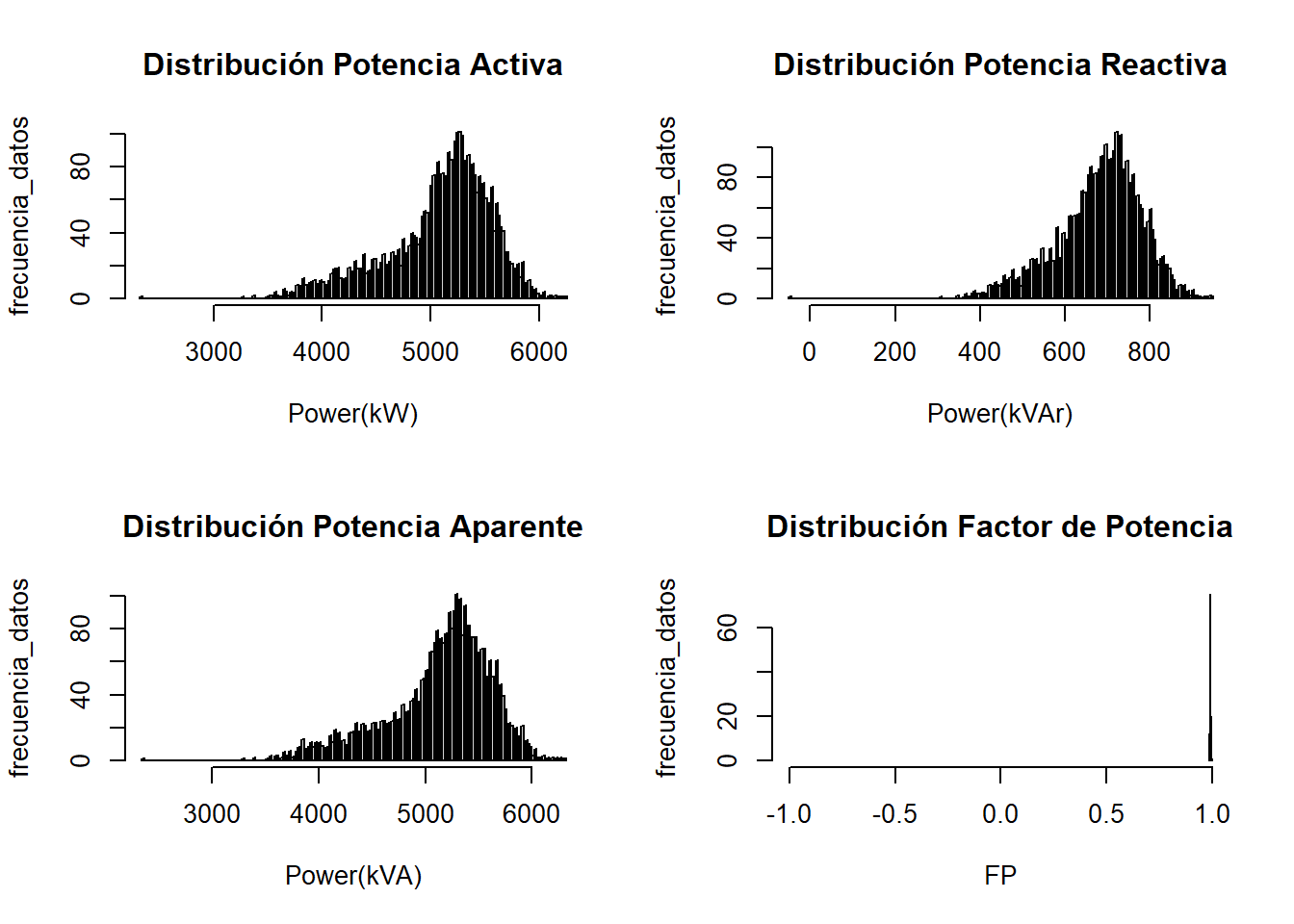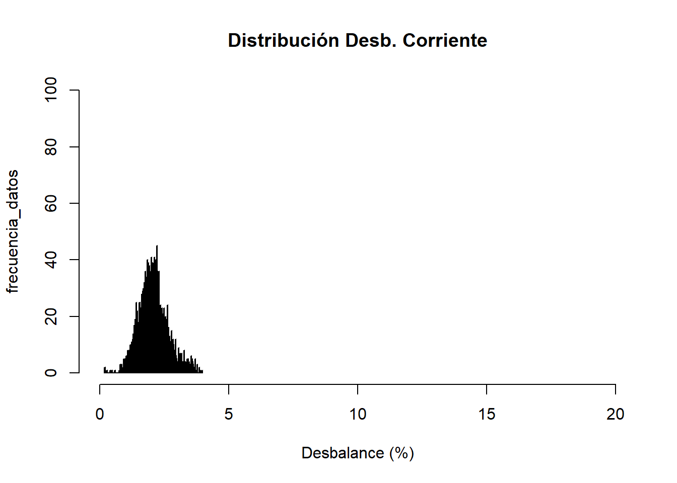 - Todos los índices de calidad de la energía se mantuvieron dentro de los límites recomendados por el IEEE. El voltaje RMS se mantuvo dentro de los limites recomendados de ±5%, solamente el 8 de febrero a las 0:20 hrs, se detectó una caída de tensión de 7.8%, y el 27 de febrero a las 11:50 hrs una caída de 19.13%, posiblemente un problema de la red de suministro. Los desbalances de la tensión y de la corriente se mantuvieron con valores bajos, lo que indica que la planta está trabajando de manera balanceado al igual que la tensión. El factor de potencia se mantiene prácticamente todo el tiempo en 0.99 en atraso, una condición ideal desde el punto de vista del factor de potencia.